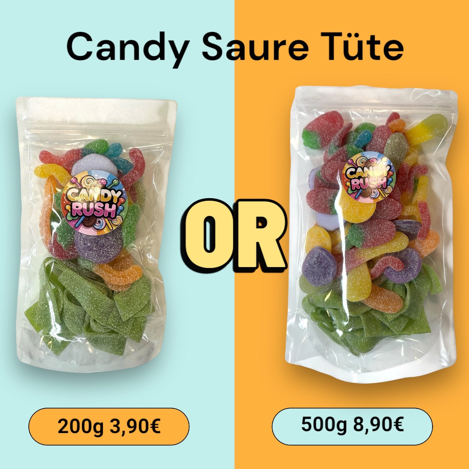 Diese Tüte enthält eine Mischung aus verschiedenen sauren Süßigkeiten. Genießen Sie einen aufregenden Mix aus fruchtigen und sauren Aromen. Ideal für alle, die das gewisse Extra suchen. Verwöhnen Sie Ihren Gaumen mit einer Auswahl an sauren Leckereien.